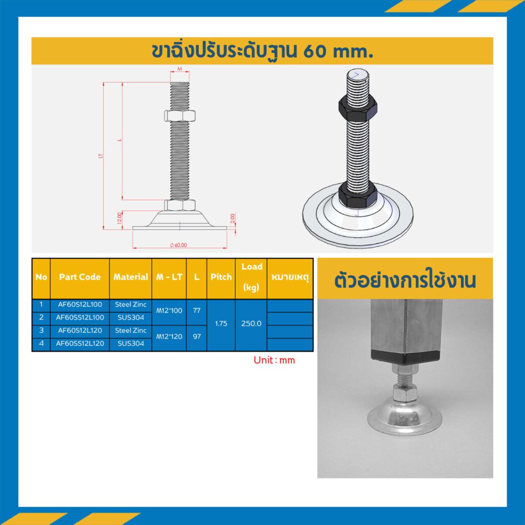 ขาฉิ่งปรับระดับ ฐาน 60 mm. M12 x 120 mm. (SUS)