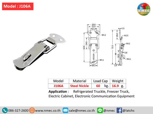 หูปิ่นโต หรือ Snap Locks , คลิปล็อค หูล็อคถัง ตัวล็อค หูล็อค ทางบริษัท เอ็น เอ็ม อี ซี ก็มีอยู่หลายอย่าง ขึ้นอยู่กับการนำไปใช้งาน ซึ่งโดยหลักก็มีอยู่ดั่งนี้คือ